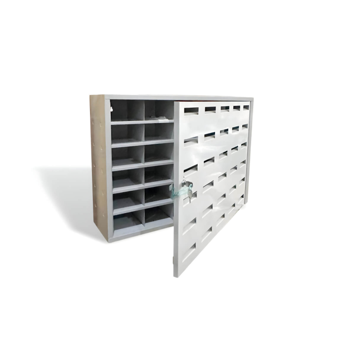 Skriňa na úschovu mobilov s 30 priehradkami umožňuje bezpečnú úschovu telefónov. Mobilné telefóny je možné vložiť do skrinky cez vhadzovacie otvory, ktoré sú dostatočne veľké na to, aby sa do nich zmestili všetky typy mobilných telefónov.