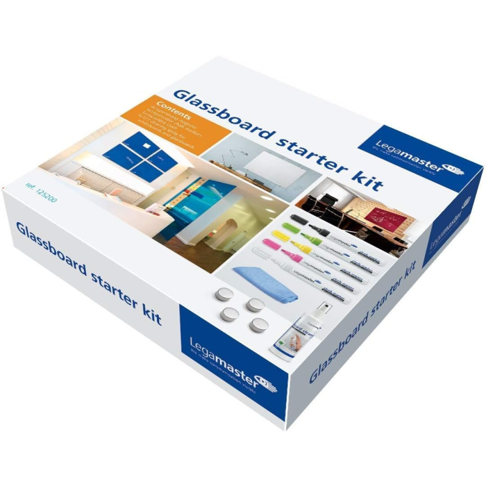 Súprava základných doplnkov obsahuje: 4 super silné magnety, 5 popisovačov Legamaster, utierku z mikrovlákna a čistiaci sprej TZ7.