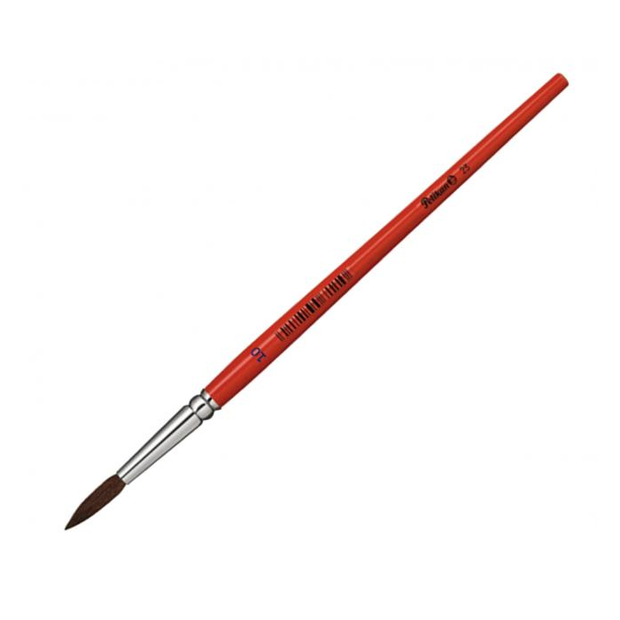 Guľatý vlasový štetec Pelikan 23, štandarndá kvalita, s hliníkovým úchytom, oranžová lakovaná rukoväť, hrúbka stopy uvedená ako číslo.