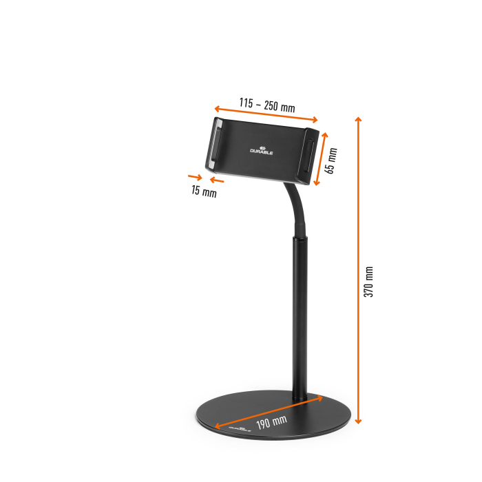 Stojan na stôl s držiakom na tablet a mobilný telefón, vybavený flexibilným ramenom a guľovým kĺbom