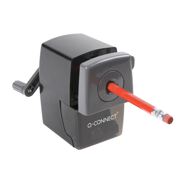 Strúhadlo stolové manuálne na ceruzky s rukoväťou má veľký, priehľadný kontajner na hobliny pre štandardné 8 mm ceruzky odolná konštrukcia s odolnou špirálovou čepeľou, funkcia automatického zastavenia. farba: čierna