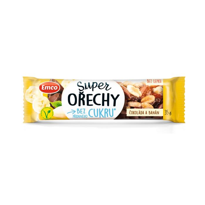 Tyčinka Super orechy čokoláda a banán VEGAN 35g