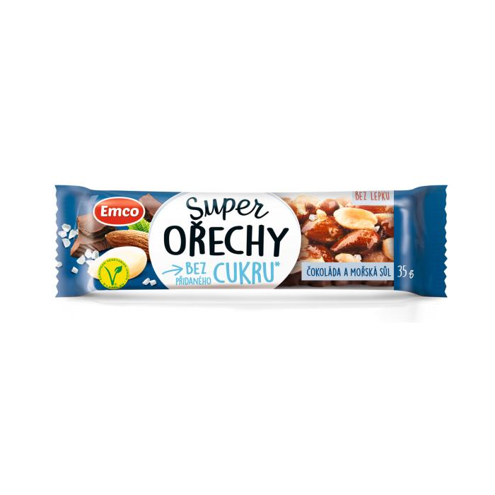 Tyčinka Super orechy čokoláda a morská soľ VEGAN 35g