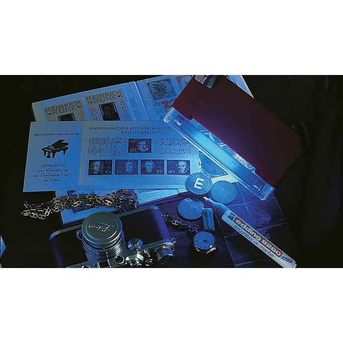 Popisovač so špeciálnym atramentom, viditeľným výhradne pod ultrafialovým svetlom. Okrúhly hrot, šírka stopy 1,5 - 3 mm.