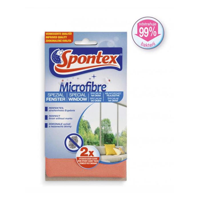 Objavte špeciálnu utierku z mikrovlákna Spontex Window na dosiahnutie perfektne vyleštených okien bez šmúh! Vďaka svojmu ultrajemnému vláknu veľmi účinne zachytí aj tie najmenšie nečistoty na všetkých sklenených plochách.