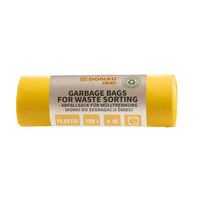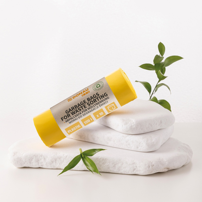 Mimoriadne odolné a roztiahnuteľné vrecia na odpadky vhodné na triedenie plastového odpadu. Vyrobené zo 100 % recyklovaného materiálu (LDPE). Majú certifikát Der Grüne Punkt- účasť v systéme recyklácie a zhodnocovania odpadu podľa právnych predpisov EÚ, certifikát Blue Angel