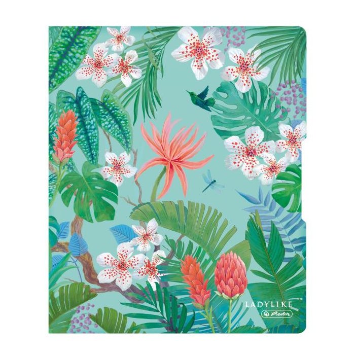 Zakladač 2-krúžkový Ladylike, PP, mechanika typ D, výška plnenia 16 mm. Motív Jungle.