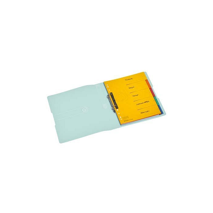 Zakladače rady Pastell s 2 D - krúžkami. Chrbtové vrecko s vymieňateľným štítkom, formát A4. Kapacita 230 listov.