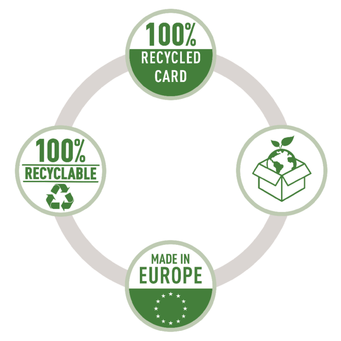 Kvalitný ekologický pákový zakladač vyrobený zo 100% recyklovanej lepenky, klimaticky neutrálny, s ekologickými certifikátmi FSC a Blue Angel. Jedinečná mechanika No. 1 zaisťuje vynikajúci výkon. 75 mm široký a vhodný pre A4.