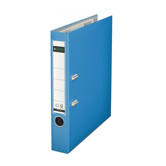 Patentovaný pákový celoplastový zakladač formátu A4 vyrobený z kvalitného kartónu. Vonkajšia strana potiahnutá farebnou polypropylénovou fóliou, vnútorná svetlosivou fóliou. Zakladač je vybavený vysokokvalitnou mechanikou Leitz, chrbtovým krúžkom, kovovou lištou a vymeniteľným papierovým štítkom na popis. Vysokokvalitná mechanika umožňuje o 50 % širšie otvorenie zakladača než dovoľuje bežná páková mechanika, čo znamená až 20 % úspory času pri manipulácii a archivácii dokumentov. Šírka chrbta 5,2 cm. Väčšie balenie 10 ks. Farba svetlo modrá.