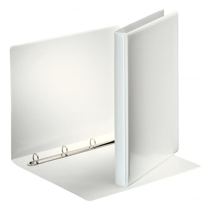 4-krúžkový celoplastový zakladač A4 s predným a chrbtovým priehľadným vreckom.