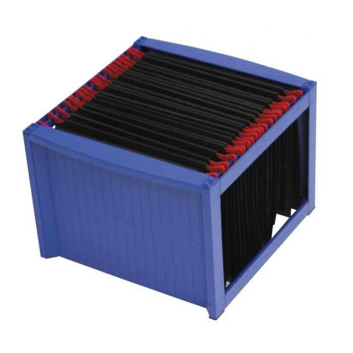 Zásobník vhodný na závesné obaly A4 s prístupom zhora. Jednoduchá montáž, možnosť stohovania. Kapacita cca 40 závesných obalov typu V.