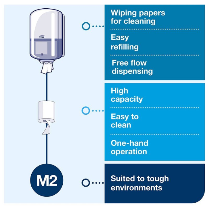 Tork® zásobník so stredovým odvíjaním s dizajnom Elevation je vysoko kompaktné, viacúčelové riešenie pre profesionálne prostredia, kde sú na utieranie povrchu potrebné obe ruky. Utieranie povrchov rýchlo vďaka neobmedzenému prúdu, čo umožňuje používateľom vybrať toľko, koľko vyžadujú ich úlohy. Zásobníky Elevation majú praktický a moderný vzhľad.