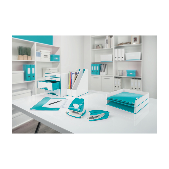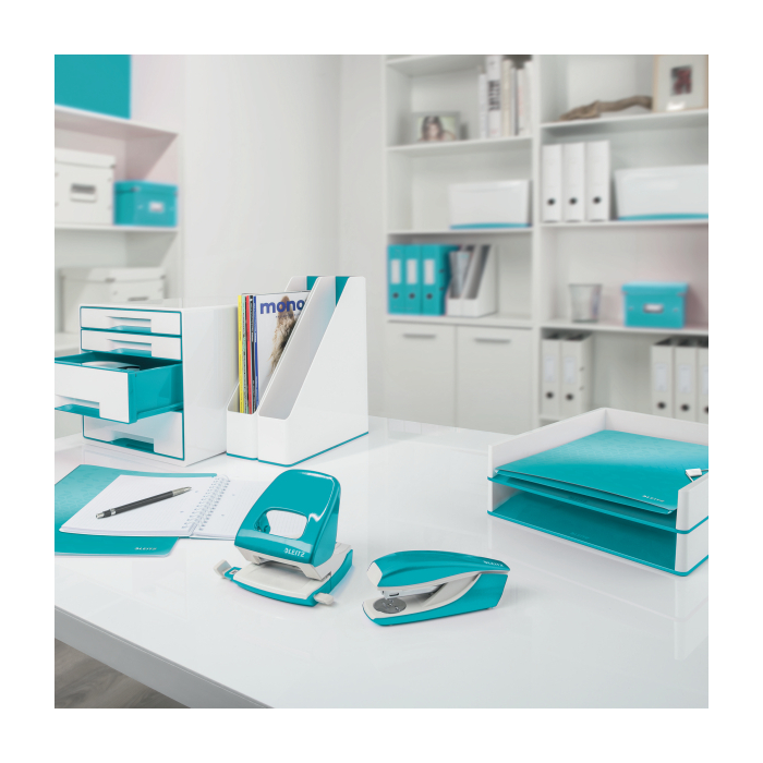 Dodajte svojmu pracovnému miestu alebo domácnosti farbu a skombinujte s ostatnými kancelárskymi výrobkami z radu Leitz WOW. Na spinky Leitz Power Performance P3, 24/6 a 26/6. Vrátane štartovacieho balenia. Praktický integrovaný vyberač spiniek. Farba ľadovo modrá.