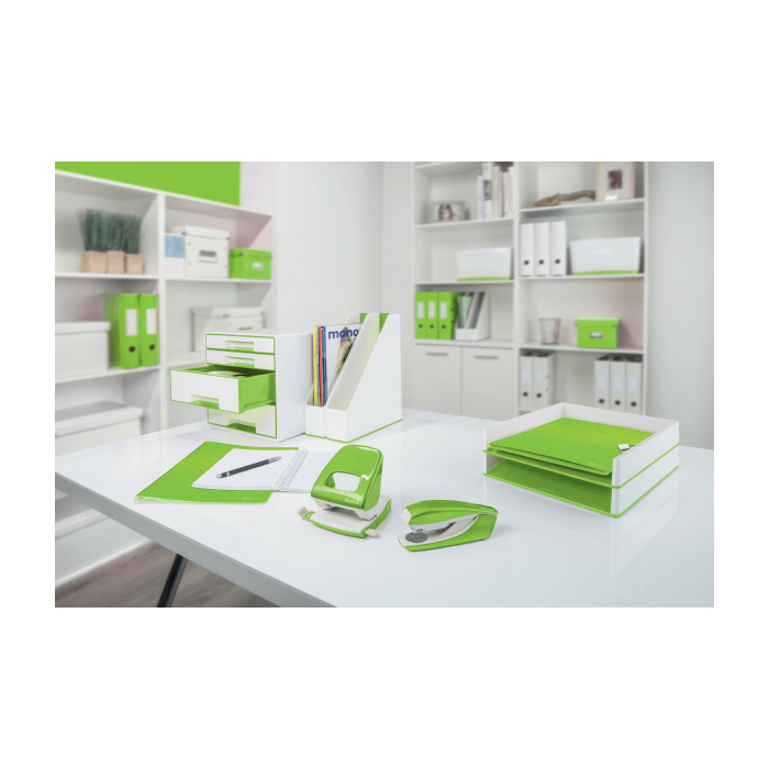 Dodajte svojmu pracovnému miestu alebo domácnosti farbu a skombinujte s ostatnými kancelárskymi výrobkami z radu Leitz WOW. Na spinky Leitz Power Performance P3, 24/6 a 26/6. Vrátane štartovacieho balenia. Praktický integrovaný vyberač spiniek. Farba metalická zelená.