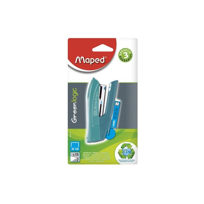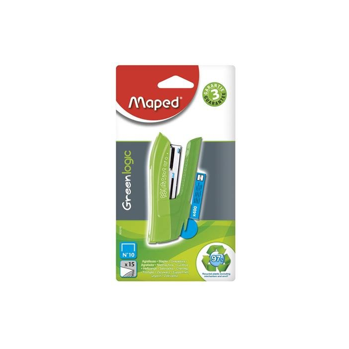 Zošívačka, No. 10, 15 listov, MAPED "Greenlogic Pocket", mix farieb
