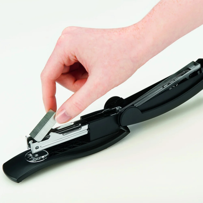 Kancelárska zošívačka na stôl aj do ruky v modernom dizajne. Zásobník spiniek s plastovým osadením a jednoduchým vedením spiniek. Kapacita náplne 100 spiniek 24/ 6 alebo 26/ 6. Hĺbka zošívania 6,5 cm. Hmotnosť 140 g. Farba: modrá Kapacita listov: 15 Hĺbka zošívania: 6,5 cm