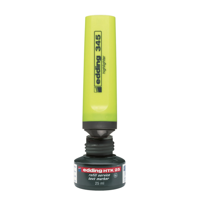 Popisovač so zrezaným hrotom so šírkou stopy 2 - 5 mm. Pre zvýraznenie textových pasáží, výstupov z atramentových tlačiarní, poznámok a pod. Vodovzdorný pigmentový atrament so silne svietivými a intenzívnymi farbami. Vhodný pre InkJet - pri zvýrazňovaní textov tlačených na atramentových tlačiarňach sa atrament nerozpíja. Dopĺňateľný atramentom HTK 25. Väčšie balenie 10 ks, žltej farby