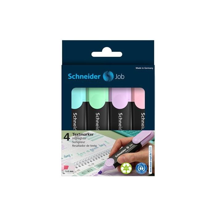 Zvýrazňovač Schneider Job v pastelových farbách pre zvýraznenie textu v sade 4 ks.